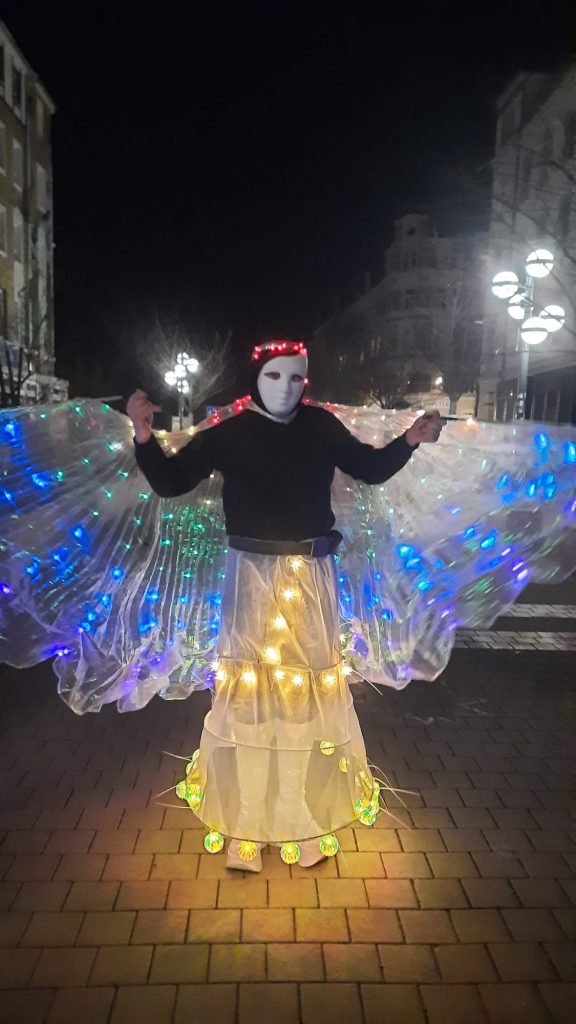 Die Parade wurde von zwei Streetbands aus Chemnitz unterstützt, die beide vom PAPER LANTERN COLLECTIVE geleitet werden und von denen eine aus INPEOS-Teilnehmenden besteht. Sie wurden auch von internationalen Künstler:innen unterstützt. Bei der Ankunft an dem finalen Veranstaltungsort, den Chemnitz Open Space, gab es Essen und Musik. Die Papierlaternen füllten den Raum als Repräsentation der Chemnitzer Gemeinschaft – erhoben durch die Kulturhauptstadt.